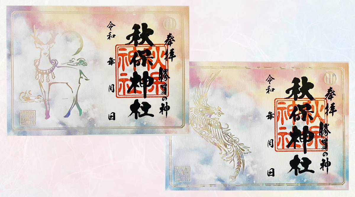 当社の御神使である鹿と天下泰平の象徴である鳳凰を箔押しにて描いた限定御朱印となります。