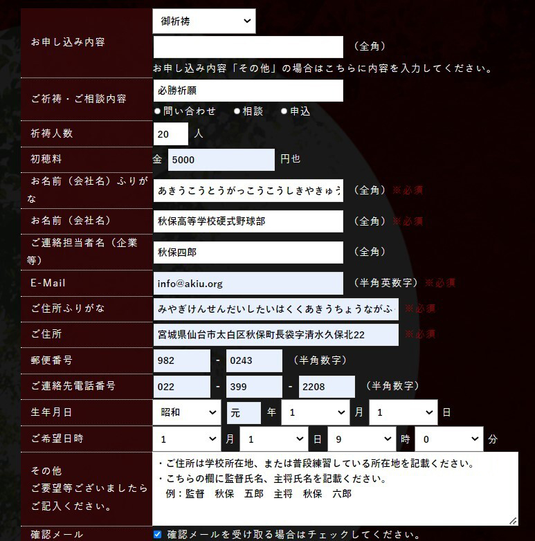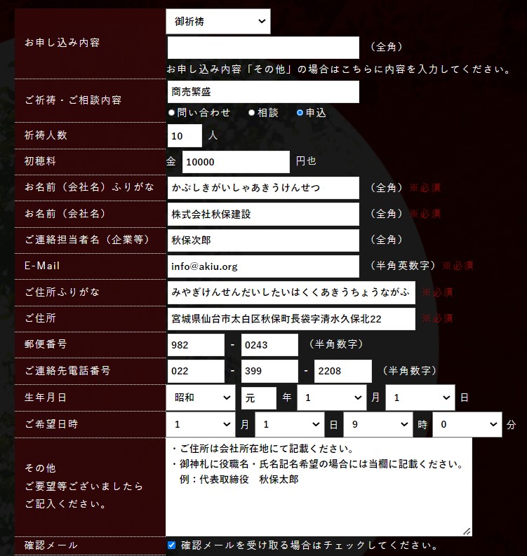 ※本日より3日以内での御祈願をご希望の際は、直接神社までお電話にてお問い合わせください。