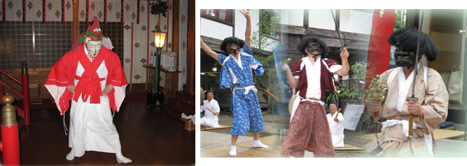 当神社の神楽は、400年以上の歴史があると伝えられております。 (神社に伝わる「別当系図」(べっとうけいず)にて) 演舞は例大祭の一日目に行います。また例大祭での神楽奉納の後、湯立て神事が執り行われます。 また1月14日の夜、神前で年始めの奉納演舞があります。 演目は法印神楽の舞を主としており、一部に熊野堂系の舞曲を含め、 舞型には修験の呪を多く用いております。